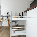 Dla wygody Gości Kleines Apartment Mit Balkon obejmuje aneks kuchenny z ekspresem do kawy/herbaty, lodówką i przyborami kuchennymi. Obiekt jest usytuowany w odległości 5-minutowego spaceru od przystanku Hertzstrasse.